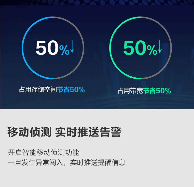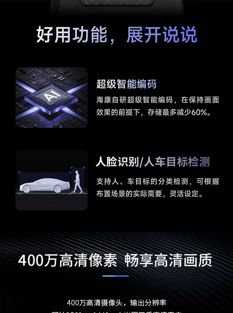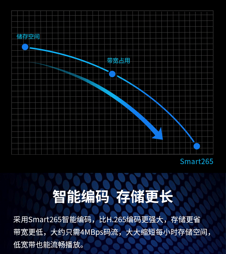 支持超级智能编码,可根据场景情况自适应调整码率分配,有效节省存储成本