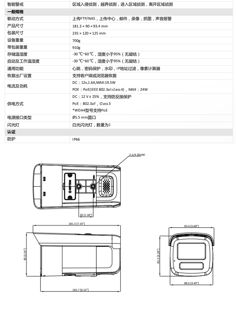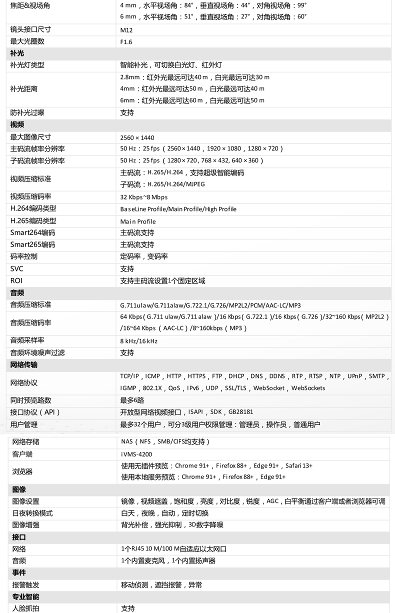 支持白光/红外双补光,红外最远可达60 m,白光最远可达50 m